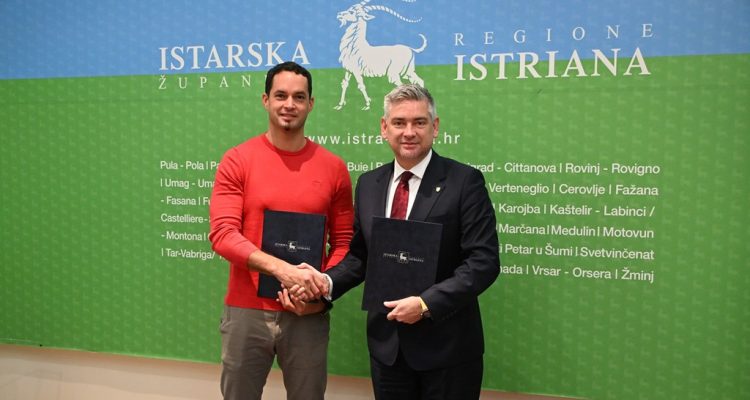 Istarski župan Boris Miletić danas je u sjedištu Istarske županije u Puli, predsjedniku Uprave tvrtke Vladimir Gortan Darvinu Žufiću, uručio Ugovor o izvođenju radova sanacije vanjskog igrališta Područne škole Vižinada.…