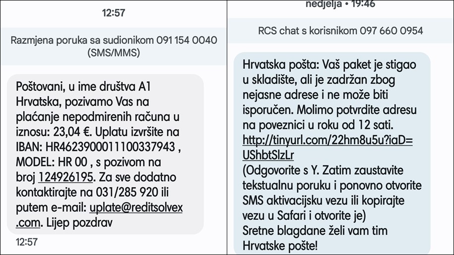 Podsjećamo da je smishing (kombinacija riječi SMS i Phishing – krađa identiteta) oblik prijevare koju prevaranti koriste kako bi dobili pristup vašim osobnim, financijskim ili sigurnosnim podacima putem tekstualnih poruka.