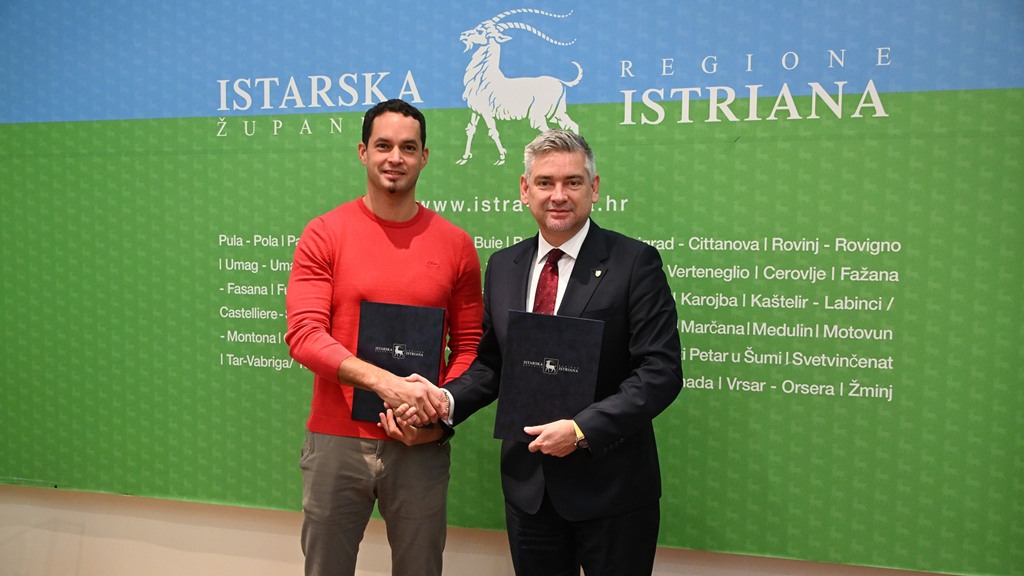 Istarski župan Boris Miletić danas je u sjedištu Istarske županije u Puli, predsjedniku Uprave tvrtke Vladimir Gortan Darvinu Žufiću, uručio Ugovor o izvođenju radova sanacije vanjskog igrališta Područne škole Vižinada.