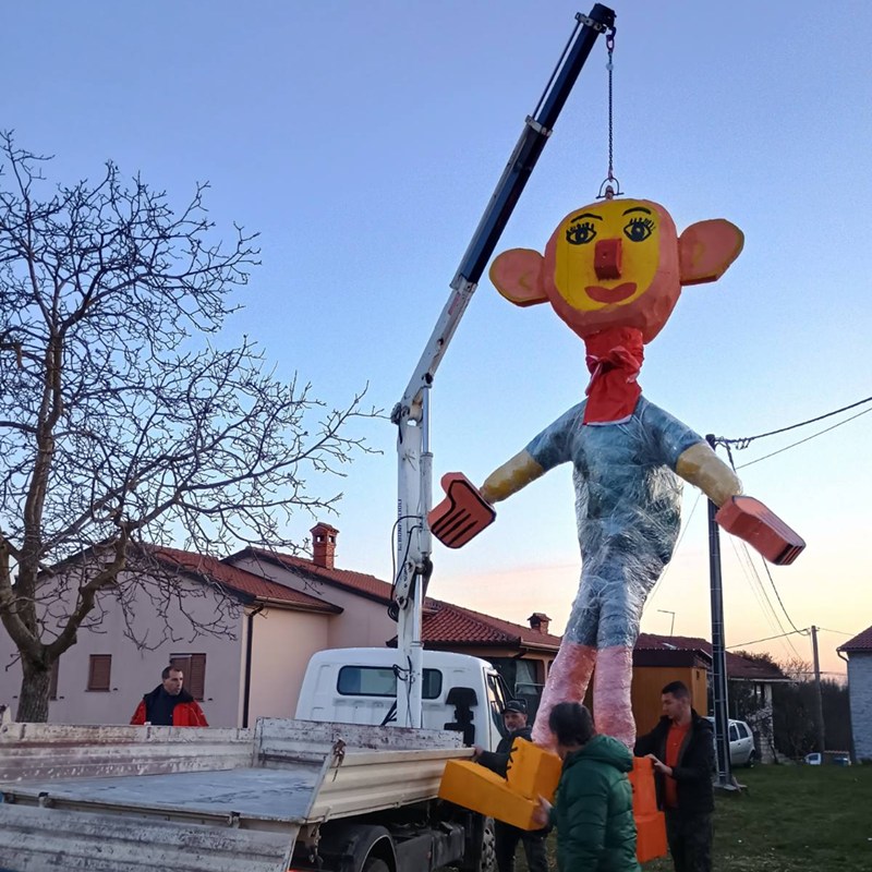 „Došla je Antonja, dan kad dižemo pusta i slavimo peti štajun“, rekao je Darko Rusac u govoru prije podizanja, a onda objasnio zašto su se složili da ove godine pust nosi ime Zgubidan!