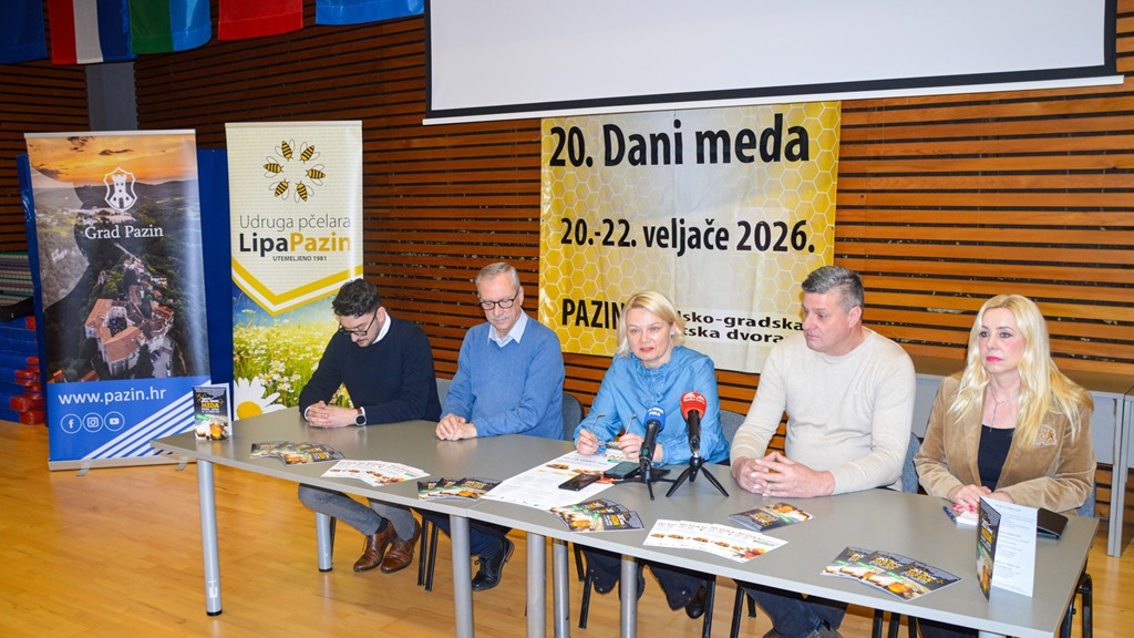 Od petka do nedjelje, od 20. do 22. veljače 2026. godine, u Školsko-gradskoj sportskoj dvorani u Pazinu održat će se jubilarni 20. Dani meda, koji ove godine donose prošireni trodnevni program i dosad najbogatiju ponudu izlagača i sadržaja.