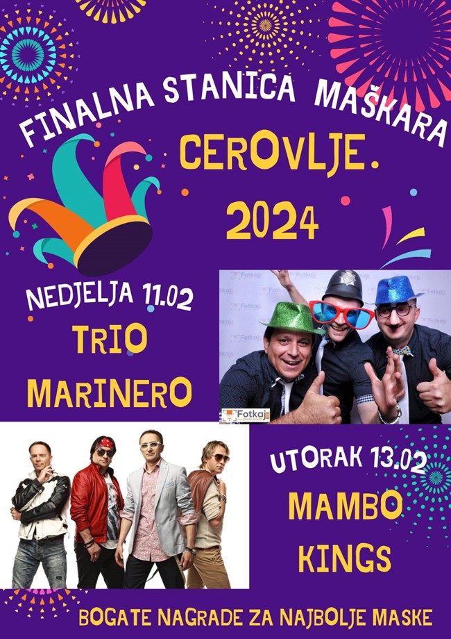 Znači, nedjelja, 11. veljače 2024. godine, na cerovljanskom karnevalu nastupa Trio Marinero, a uz odličnu glazbu, čeka nas i tulum do zore te bogate nagrade.