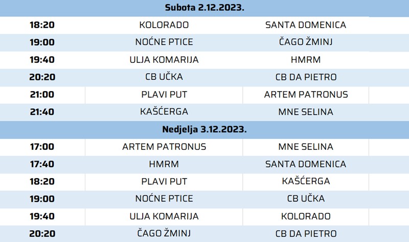 O snazi skupina ne treba govoriti previše, jasno je kako će Artem Patronusu biti jako teško u „skupini smrti“, ali sigurno će atraktivnog futsala i velike borbe biti i u druge dvije skupine. U subotu 2. prosinca prva se utakmica igra u 18:20 sati, prema sljedećem rasporedu.