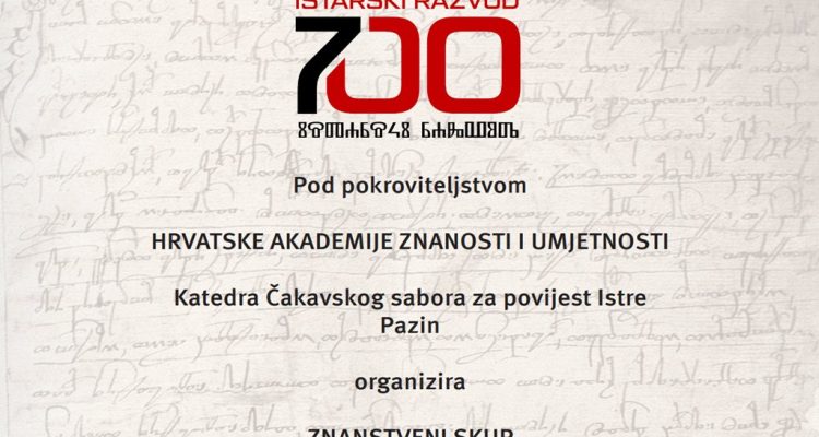 U povodu 700. obljetnice Istarskog razvoda, hrvatskoga glagoljskog povijesnog, pravnog i jezičnog spomenika, Katedra Čakavskog sabora za povijest Istre Pazin, u suradnji s Državnim arhivom u Pazinu, Čakavskim saborom Žminj,…