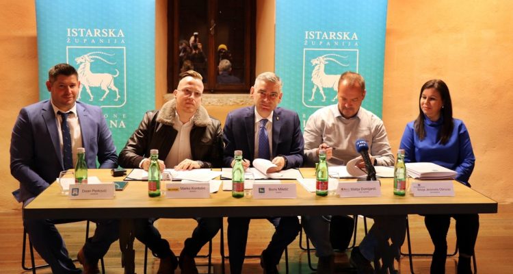 Istarski župan Boris Miletić potpisao je danas dva vrijedna sporazuma o prijenosu proračunskih sredstava s načelnicima Općina Medulin i Svetvinčenat Ivanom Kircem i Deanom Perkovićem, a samom potpisivanju nazočili su…