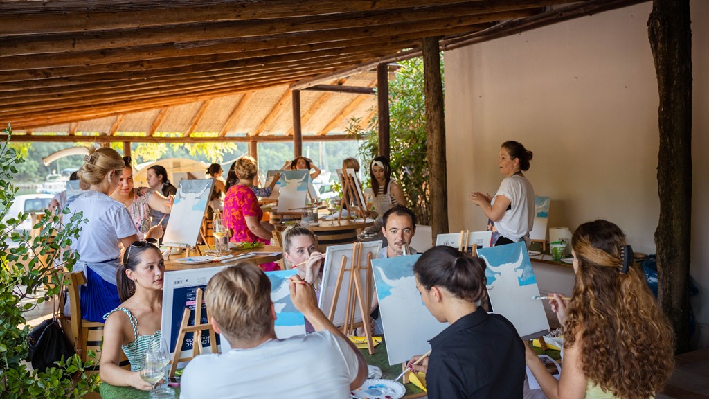 Sljedećeg tjedna, u četvrtak 14. kolovoza, na redu je vođena likovna radionica tijekom koje će sudionici na platnu oslikavati odabrane motive, a za lakše poteze kistom, uz slikanje će se uživati i u odličnim istarskim vinima. Voditeljica radionice magistra je likovne umjetnosti, Anita Pilat, koja će sudionike voditi korak po korak kako izraditi svoje remek-djelo, a koje sudionicima potom ostaje za uspomenu na sudjelovanje u radionici.