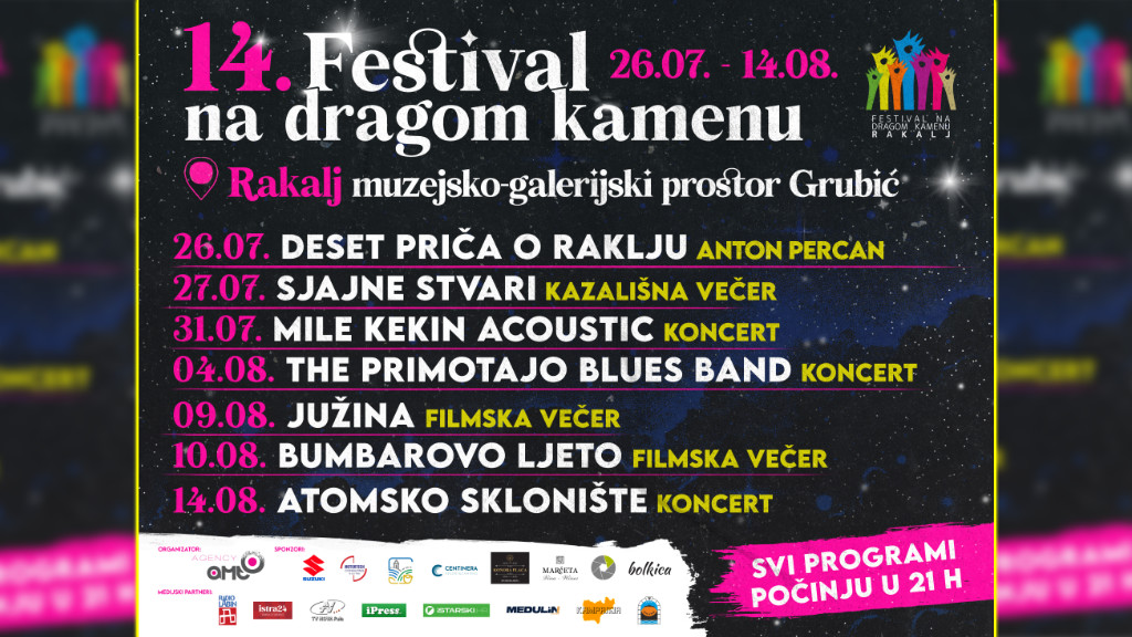 Iz Raklja nam najavljuju 14. izdanje Festivala na dragom kamenu, koje će se i ove godine održati u čarobnom ambijentu muzejsko-galerijskog prostora Grubić u Raklju, od 26. srpnja do 14. kolovoza 2025.