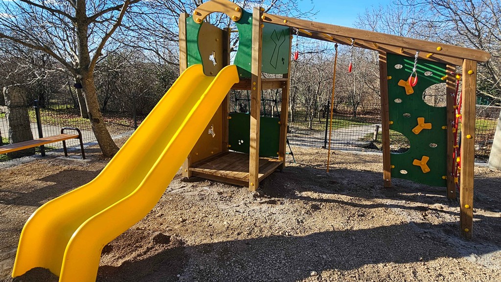 Uz njih se nalaze klackalica, ljuljačka na opruzi te dvije klupe koje pružaju udoban prostor za odmor odraslima dok su s djecom na igralištu. Cijeli je prostor dodatno osiguran panelnom ogradom, a solarno osvjetljenje donosi sigurnost i ugodnu atmosferu tijekom večernjih sati.