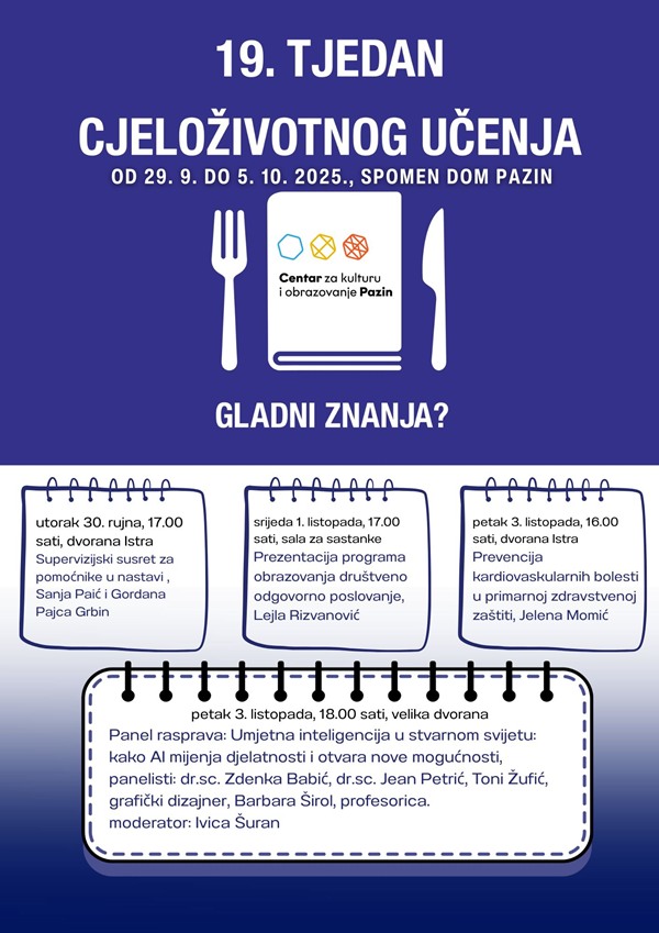 Upravo zato se i mi pridružujemo obilježavanju Tjedna cjeloživotnog učenja s bogatim programom koji potiče znatiželju, razvoj i razmjenu iskustava: