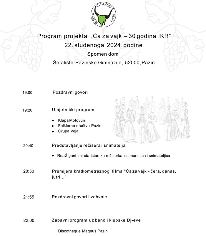 Istarski klub Rijeka povodom 30. godišnjice u Pazinu 22. studenog predstavlja projekt “Ča za vajk”