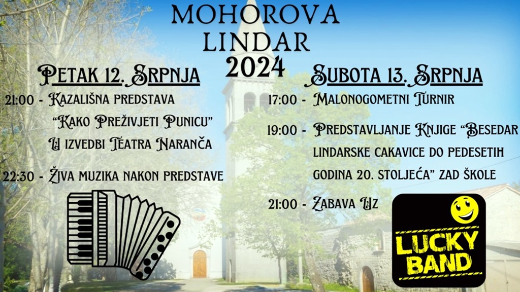 Narednog vikenda, 12. i 13. srpnja je Mohorova u Lindaru! Spremili su Lindarci u suradnji s Gradom Pazinom zanimljiv i sadržajan program.