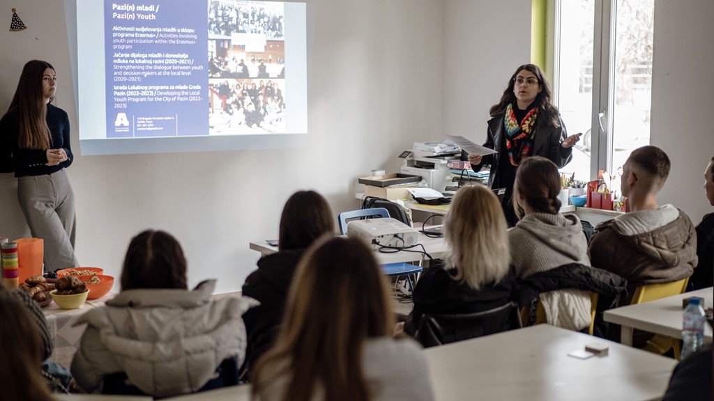 Prvi dan bio je posvećen upoznavanju rada s mladima u lokalnoj zajednici te programa i udruga aktivnih na području Pazina, uključujući CMA Pazin i Forma te aktivnosti Akcije za 5!, kao i djelovanje neformalne inicijative mladih koja je proizašla iz prošlogodišnje Akcije – Ekipa mladih.