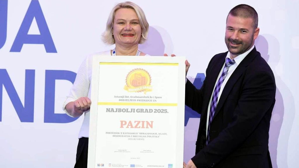 Grad Pazin proglašen je Najboljim gradom 2025. u kategoriji obrazovanje, demografija, mladi i socijalna politika u konkurenciji velikih gradova na ovogodišnjim Danima regionalnoga razvoja i EU fondova, koji se od 2. do 4. prosinca održavaju u Šibeniku u organizaciji Ministarstva regionalnoga razvoja i fondova Europske unije.