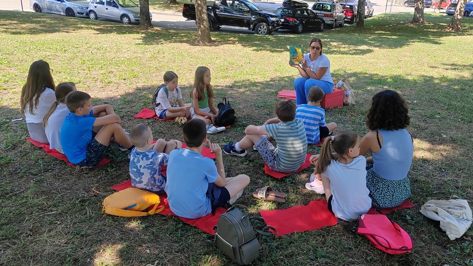 Prije toga su zajedno s Gradskom knjižnicom Pazin začinili radionicom “Zašto je krava na mjesecu?” koju je vodila knjižničarka Iva Ciceran. U hladovini parka iza Spomen doma, imali su priliku uživati u razgovoru, priči, druženju i stvaranju.