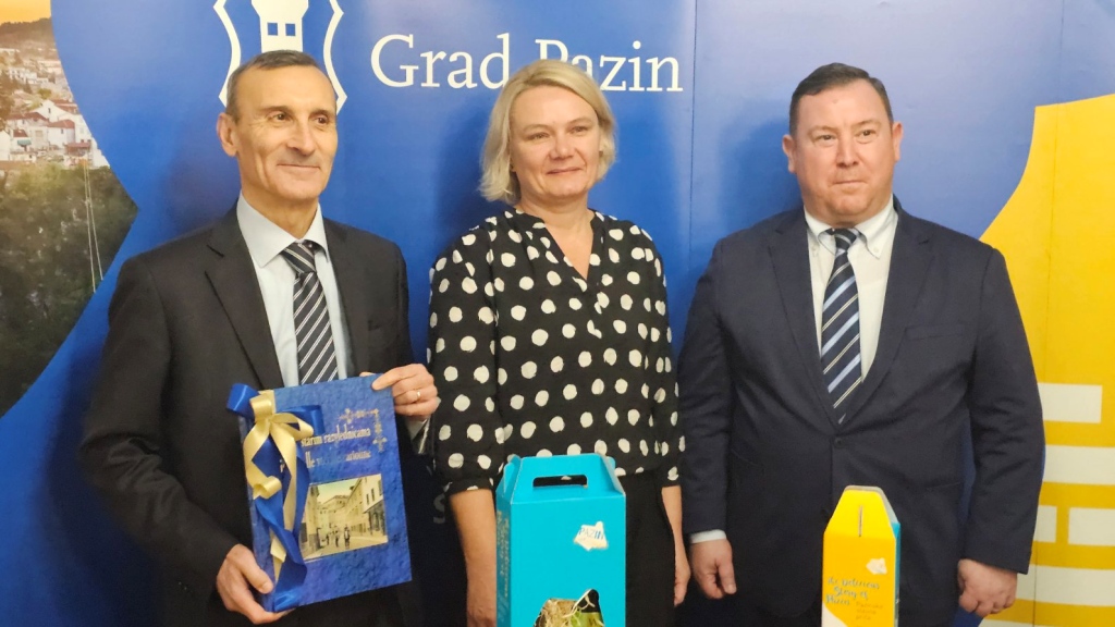 Gradonačelnica Suzana Jašić sa suradnicima jučer je u Pazinu primila veleposlanika Republike Italije u Hrvatskoj, Nj. E. Paola Trichila, te predsjednika Izvršnog odbora Talijanske Unije Marina Corvu, koji su boravili u službenom posjetu Gradu Pazinu.Posjet je dio protokolarnih aktivnosti Veleposlanstva usmjerenih obilasku talijanskih zajednica u hrvatskim gradovima. Uoči prijema veleposlanik je razgledao Etnografski muzej Istre i Pazinski kaštel, uz stručno vodstvo i upoznavanje s bogatom kulturnom baštinom Pazina i središnje Istre. Na prijemu se razgovaralo o važnosti djelovanja i doprinosu talijanske zajednice u Pazinu i široj regiji. Nakon uvodnih riječi, veleposlaniku su predstavljeni aktualni projekti Grada Pazina, među kojima se posebno istaknula uspostava suradnje s Gradom Clusoneom u Italiji i planirano bratimljenje dvaju gradova.