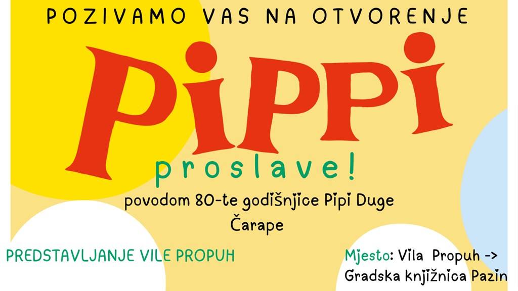 Gradska knjižnica Pazin s ponosom najavljuje početak trotjedne proslave 80. rođendana Pipi Duge Čarape, jedne od najpoznatijih i najutjecajnijih junakinja dječje književnosti.