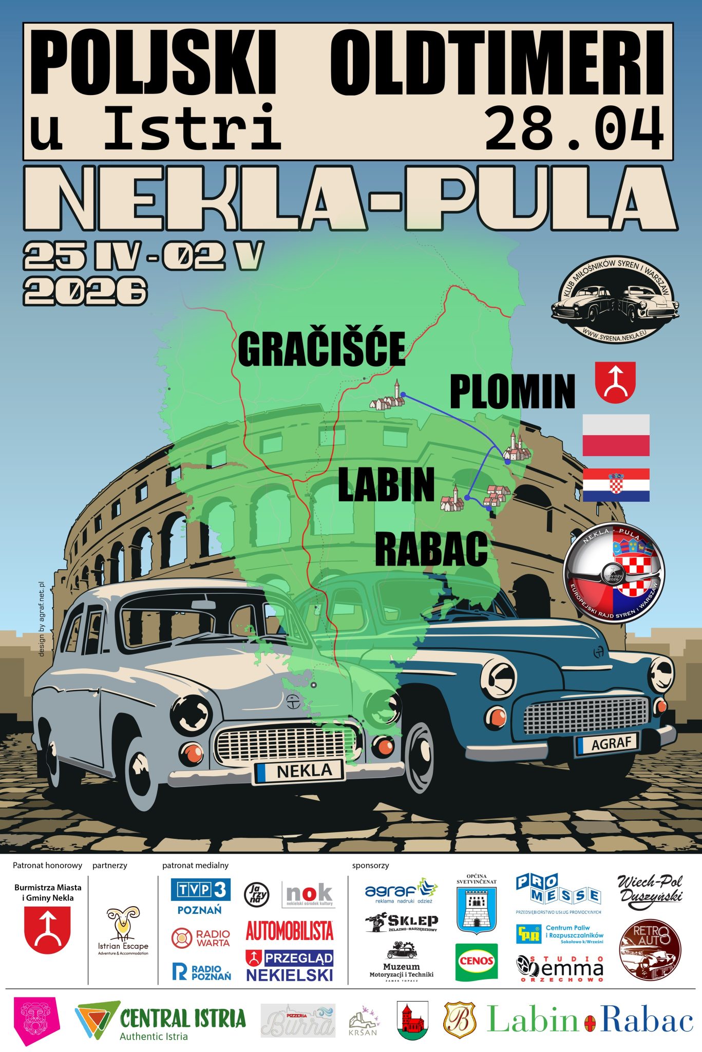Srdačno pozivamo lokalno stanovništvo i posjetitelje da posjete predviđene lokacije i uživo dožive ove iznimne automobile. Neka se poljska automobilska povijest susretne s istarskom tradicijom i gostoljubivošću – u srcima starih gradova, gdje prošlost i dalje živi.