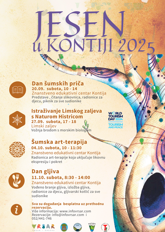 Svi su događaji potpuno besplatni, ali zbog organizacijskih razloga i ograničenog kapaciteta obavezna je prethodna rezervacija putem emaila info@infovrsar.com ili telefonom 052/441-746.