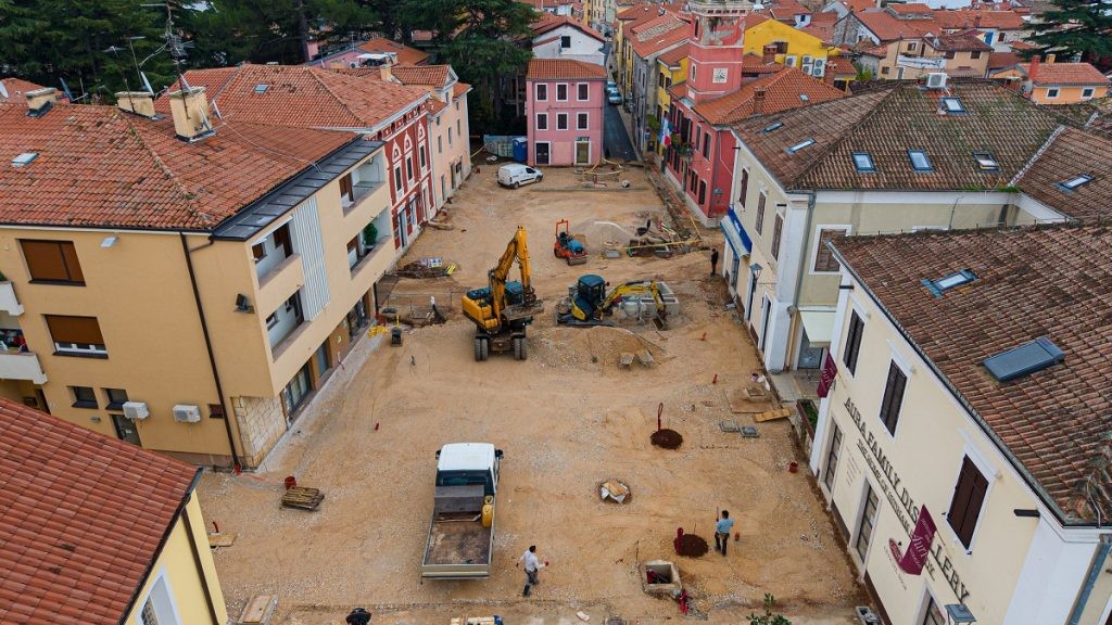 Do kraja prosinca na površini novigradskog Velikog trga, od Muzeja Lapidarij do Velike ulice, završeni su svi radovi na podzemnoj infrastrukturi, te je na betonsku podlogu postavljeno novih 600-tinjak m² kamenog popločenja.