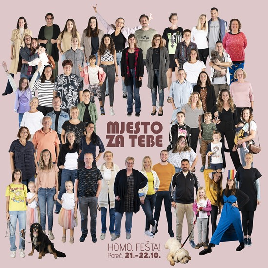 Homo, fešta! je LGBTIQ+ festival koji se po sedmi put održava u Poreču. Ovogodišnji vizual festivala čine sugrađanke i sugrađani, susjedi, none, učiteljice, prijatelji, kolegice, osobe koje grad Poreč i županiju čine ljepšim mjestom za život.
