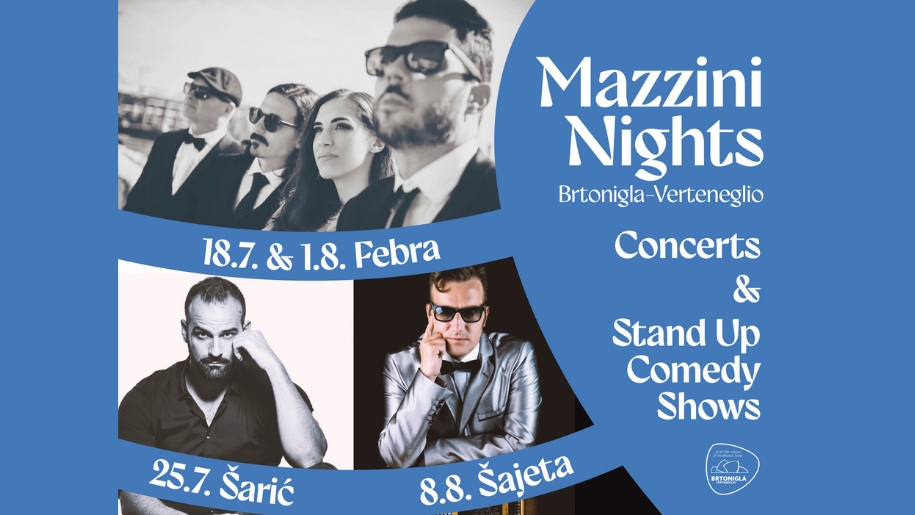 Brtonigla od četvrtka 18. srpnja postaje pozornica odlične zabave uz Mazzini Nights, četiri večeri pod zvjezdanim nebom ispunjene vrhunskom glazbom i iskrenim smijehom. Od 18. srpnja do 8. kolovoza, centar Brtonigle pretvara se u dinamičan kulturni punkt, a svaki četvrtak donosi novo iznenađenje za publiku svih generacija.