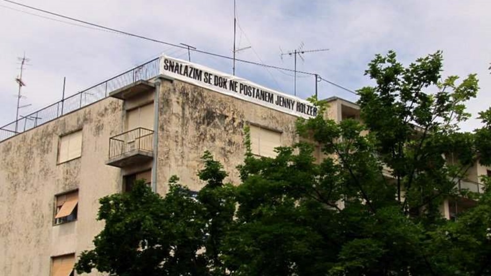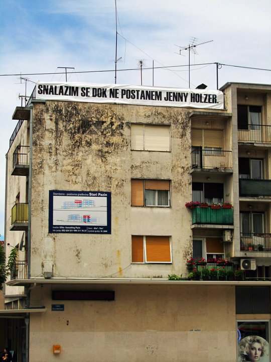 Uz financijsku pomoć gradskog Odjela za društvene djelatnosti tiskala je sedammetarski transparent na kojem je pisalo: “Snalazim se dok ne postanem Jenny Holzer” (njujorška konceptualna umjetnica) da bi sljedećih dana skrivečki snimala komentare prolaznika. Ti će joj snimci najvjerojatnije poslužiti za oblikovanje dokumentarca o percepciji konceptualne umjetnosti.
