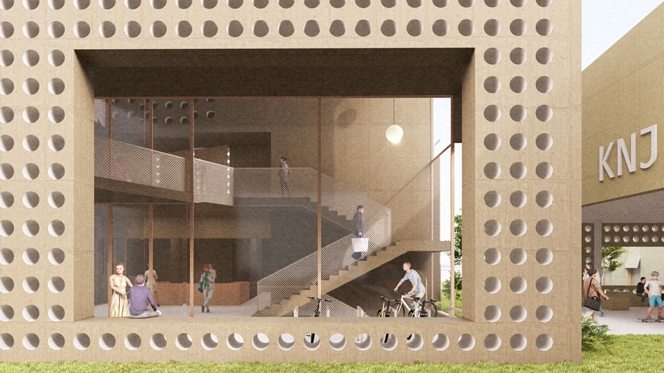 Društveni dom – “najjavniji” sadržaj s najdominantnijom zgradom, smješten na sjevernom dijelu parcele, čini prepoznatljivi znak na aveniji.