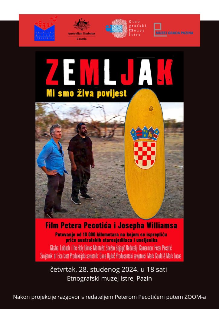 U četvrtak s početkom u 18 sati u postorijama Etnografskog muzeja istre /Muzeja grada Pazina u suradnji s Hrvatskom maticom iseljenika – Podružnica Pula i Veleposlanstvom Australije u RH će se prikazati film “Countryman/ Zemljak”.