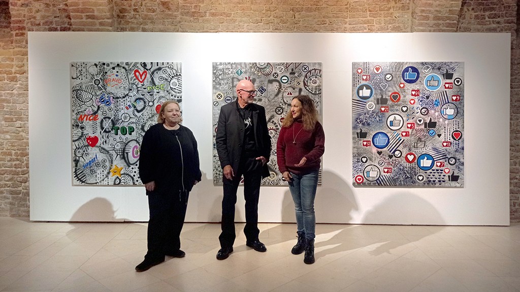 Dodao je kako su razvoj tehnologije i korištenje raznih chat aplikacija doveli do promjena u načinu izražavanja, tako umjesto pisanja rukom tipkamo, a mišljenja i osjećaje izražavamo emotikonima, emojima i gifovima. „Virtualni život na društvenim mrežama; preopterećenost informacijama koje dolaze sa svih strana, od interneta, televizije i drugih medija do društvenih mreža; vrijednost, popularnosti i uspjeh koji se mjeri brojem dobivenih lajkova; blokiranje nepoželjnih osoba i komentara te cenzura neke su od tema kojima se bavim u ovom ciklusu. Također, dio radova odnosi se na simbole na raznim ambalažama ili etiketama za održavanje odjeće i drugih tekstila koji su isto tako zamjena za riječi poput simbola za pažljivo rukovanje na paketima ili znakova za zapaljive i opasne tvari, dok grafičkim znakovima valuta propitujem utrku za društvenim statusom, novcem i moći”, pojasnio je pazinski umjetnik.