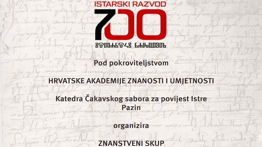U povodu 700. obljetnice Istarskog razvoda, hrvatskoga glagoljskog povijesnog, pravnog i jezičnog spomenika, Katedra Čakavskog sabora za povijest Istre Pazin, u suradnji s Državnim arhivom u Pazinu, Čakavskim saborom Žminj, Arheološkim muzejom Istre, Državnim arhivom u Rijeci i Muzejom Grada Pazina, te pod pokroviteljstvom HAZU-a, organizira 52. znanstveni skup Pazinski memorijal na Istarski razvod: Glagoljica. Granica. Srednji vijek.