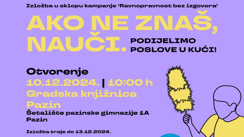 Iz GK Pazin pozivaju nas na otvorenje izložbe u sklopu kampanje „Ravnopravnost bez izgovora“, koje će se održati u utorak, 10. prosinca 2024., u 10:00 sati, u Gradskoj knjižnici Pazin.