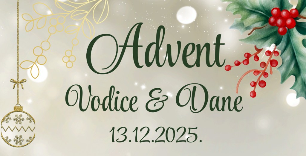 s radošću vas pozivamo da u ovu subotu, 13. prosinca 2025.godine zajedno proslavimo Advent u Vodicama i Danama, dan ispunjen svjetlom, kreativnošću i blagdanskom toplinom.