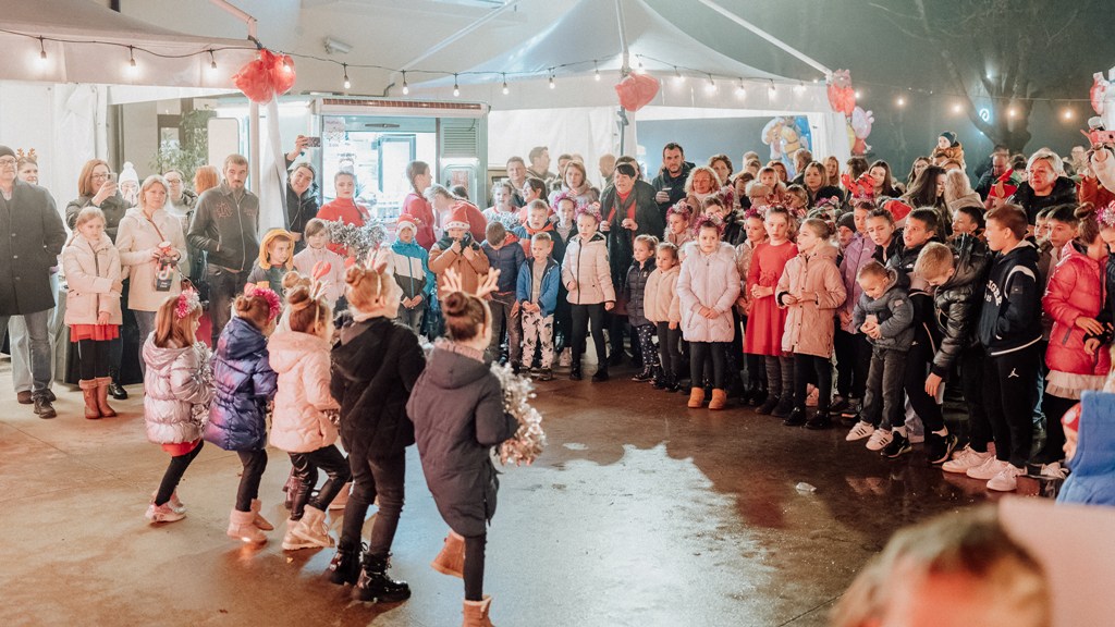 U 18:00 sati posjetitelji će imati priliku kušati tradicionalni lovački čobanac Lovačke udruge Golub Tinjan, nakon čega slijedi niz svečanih podjela poklona: najprije vrtićkim skupinama Točkice i Iglice, zatim u 18:30 sati skupinama Cmoki i Žabice, a u 19.00 sati djeci s posebnim pozivom. Za glazbenu atmosferu prije i poslije podjela poklona zadužen je One man bend Damjan Paladin, koji će svojim nastupom dodatno ugrijati blagdansko raspoloženje.