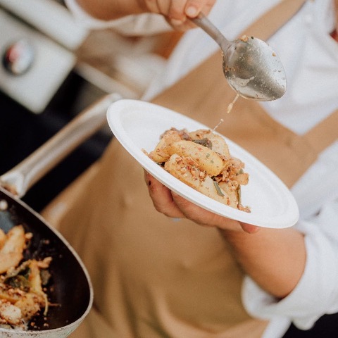 Kaštelirski je kraj poznat po uzgoju kvalitetnog krumpira koji se koristi u brojnim domaćim receptima. Stoga ne čudi da upravo gramper zauzima središnje mjesto u programu. Tijekom večeri za sve će se posjetitelje chef Gianpaolo Sardot pripremati Broštulani gramper s orihi brendirano jelo iz Kaštelir-Labinaca, a tu su i omiljeni spiralni krumpirići i pomfrit za djecu.