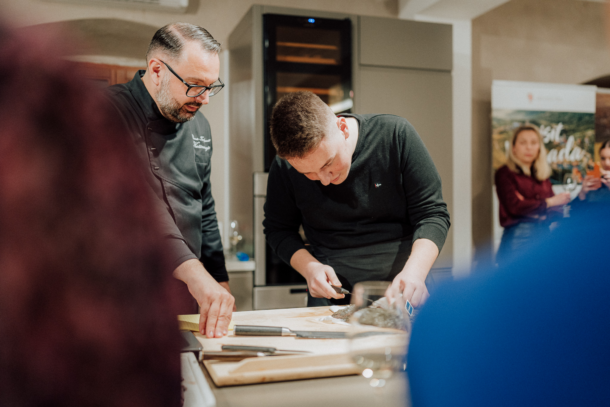 Uslijedila je radionica uz kulinarsku čaroliju chefa Siniše Cerina iz hotela Grand Park Rovinj. Na jelovniku su se našle delicije poput telećeg tartara, rižota s ciklom i gorgonzolom, janjećeg karea te posebnih cukerančića s crvenim vinom i dunjom. Sve to su savršeno upotpunila vina Giulio Ferenac Wines iz Vižinade, a polaznici su uživali u spoju vrhunskih namirnica i inovativnih tehnika pripreme. A kao posebno iznenađenje naknadno je dodana još jedna radionica koju je također održao chef Siniša Cerin, i na njoj je predstavio jedinstvene blagdanske okuse. Oduševio je sve polaznike spravljajući carpaccio od brancina s dehidriranom narančom, confit brancina s kroketima od kozica i kulena, i desert od skute sa smokvama u crvenom vinu. Svako jelo bilo je savršeno upareno s vinima vinarije Sosich Wines iz Vižinade, čime je doživljaj bio potpun.