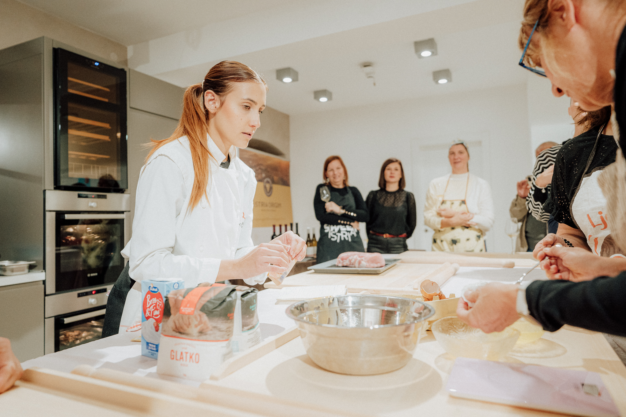 Na prvoj radionici mlada i perspektivna chefica Gaia Zec pokazala je kako spraviti punjene njoke, ispeći ombolo da bude fantastično sočan i pripremiti desert od sladoleda i muškata, pri čemu su se sva jela u opštenoj, kreativnoj i inspirativnoj atmosferi sljubljivala s vinima Arman Marijan Wines.