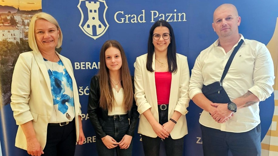 Gradonačelnica Grada Pazina Suzana Jašić sa suradnicima održala je jučer prijem za mlade nade pazinskog i hrvatskog kickboxinga, Gretu Marečić i Lenu Smilović u pratnji trenera Denisa Matejčića.